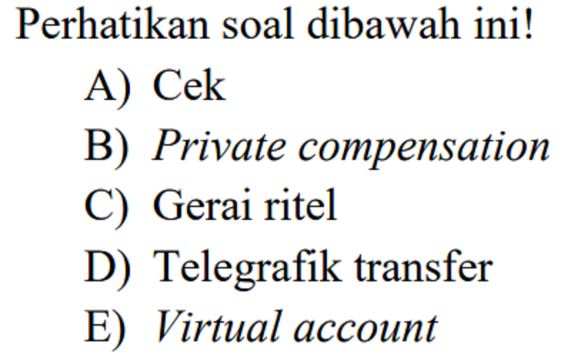 {"name":"LatihanYuk! Kegiatan Pembelajaran 2", "url":"https://www.quiz-maker.com/QPREVIEW","txt":"Berikut adalah suatu kegiatan yang menyebabkan devisa suatu negara bertambah, yakni…., Dari pilihan di atas, yang termasuk cara pembayaran internasional adalah…., Fasilitas atau jasa transaksi internasional untuk memperlancar transaksi jual beli barang adalah prinsip dari…","img":"https://www.quiz-maker.com/3012/CDN/85-4115645/screenshot-2023-01-27-123358.png?sz=1200"}