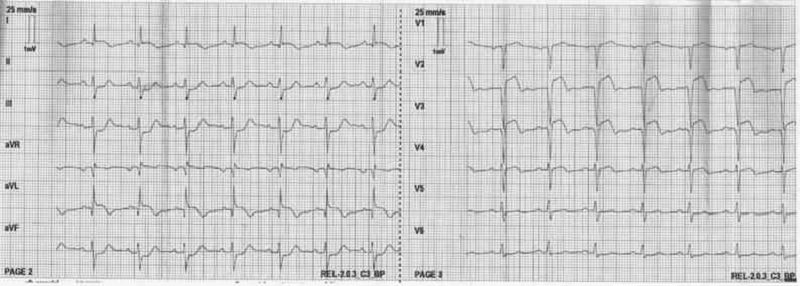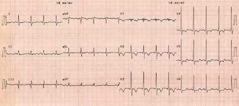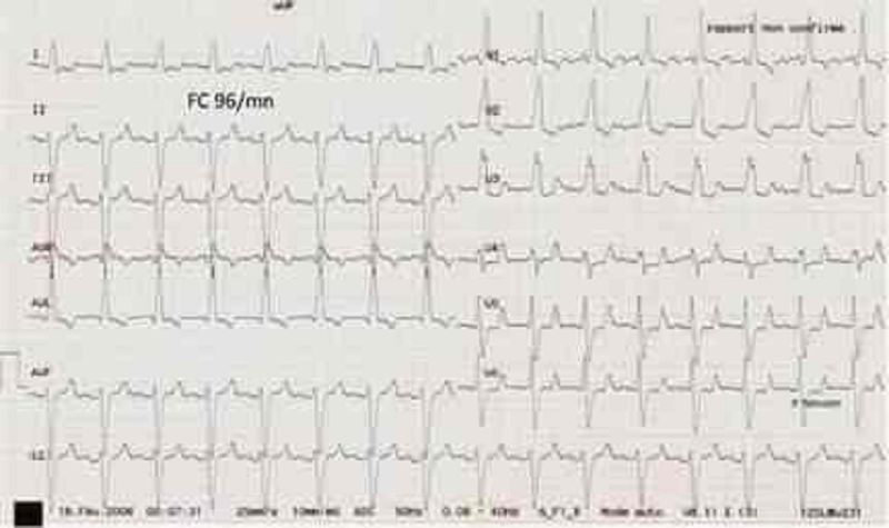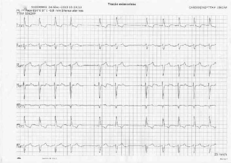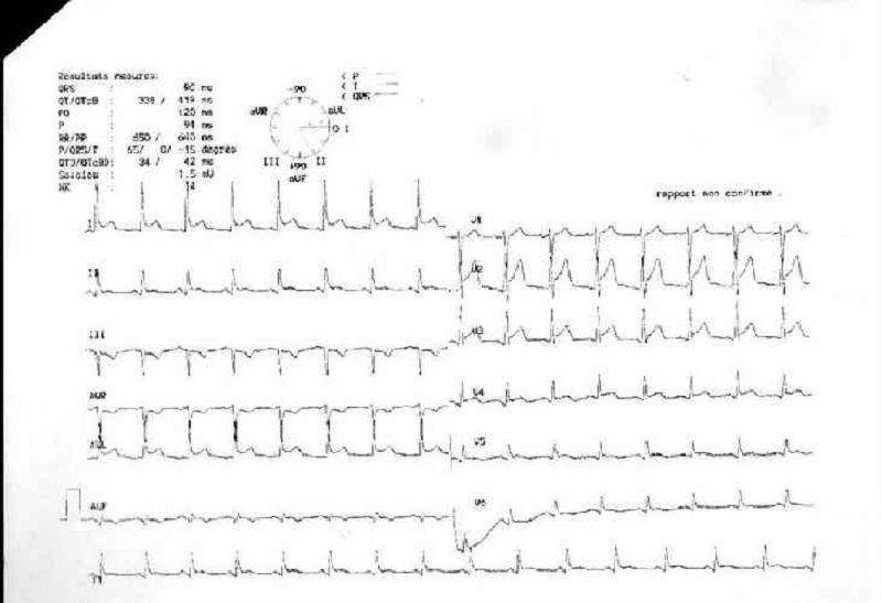 Mr X, 55 ans, est admis aux urgences pour un myélome multiple avec hypercalcémie. Son examen clinique retrouve une tension artérielle à 125/80 mmHg, une fréquence cardiaque à 85/min. Le patient est apyrétique. Un électrocardiogramme est réalisé. Parmi les manifestations électrocardiographiques suivantes, laquelle serait la plus évocatrice d'une hypercalcémie avec signes de gravité ?