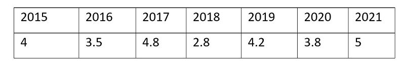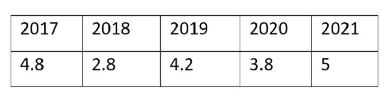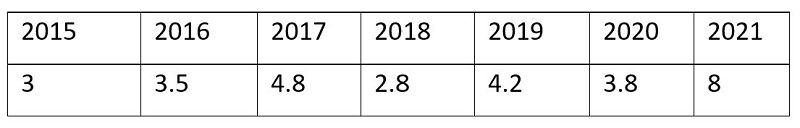 มแแชแแแฃแแแ, แ แแ 2015 แฌแแแก แแแ แแแ แแแแแแ แก แกแแฅแแ แแแแแแจแ แแแคแแฅแกแแ แแ 4 แแแแกแ แแแขแแกแแแแแ แจแแแฎแแแแ , 2016 แฌแแแก แแแ แแแแ แแแแแ แแกแแแแแก แแแกแ แ แแชแฎแแ แแแฎแแ 4,2 แแแแกแ, 2017 แฌแแแก แแแ แแแ แแแแแแ แก แแแแ แ แแชแฎแแ แแงแ แฃแแแ 5 แแแแกแ, 2018 แฌแแแก แแแ แแแแ แแแแแ แแกแแแแแก 5,2 แแแแกแ., 2019 แฌแแแก แแแ แแแ แแแแแแ แก แแ 5,5 แแแแกแ. 2015-2019 แฌแแแแจแ แแแขแแกแแแแแ แจแแแแฎแแแแแแแก แกแแจแฃแแแ แ แแชแฎแแ แขแแแแ: