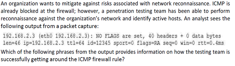 NO FLAGS are set indicates the testing team is using hping