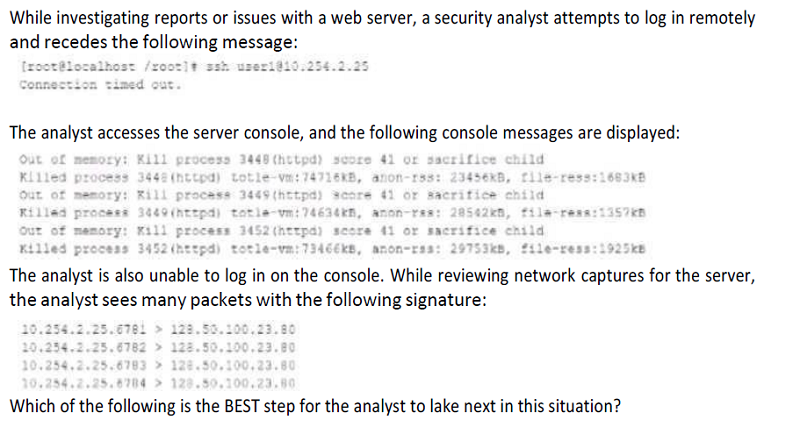 {"name":"CS0-003 Study Test 4", "url":"https://www.quiz-maker.com/QPREVIEW","txt":"The Chief Information Officer (CIO) for a large manufacturing organization has noticed a significant number of unknown devices with possible malware infections are on the organization's corporate network. Which of the following would work BEST to prevent the issue?, An information security analyst discovered a virtual machine server was compromised by an attacker. Which of the following should be the FIRST step to confirm and respond to the incident?","img":"https://www.quiz-maker.com/3012/CDN/97-4795700/301.png?sz=1200"}